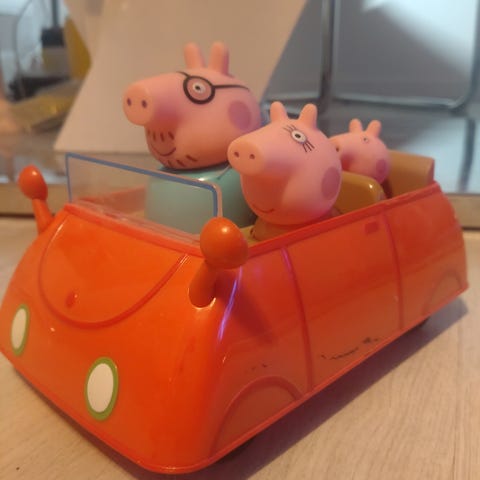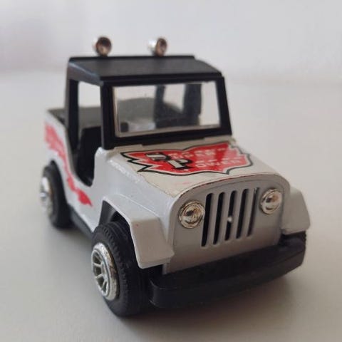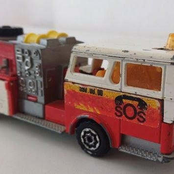 En röd leksaksbil i skala 1:64 med Valo-dekaler. Bilen är i gott skick och har en detaljerad design. Perfekt för samlare eller barn som älskar leksaksfordon.
