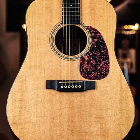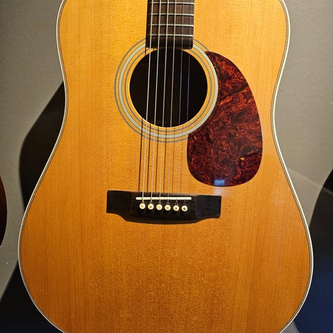 Martin 000-28 i sitka spruce och indien rosewood.. Tillverkningsnummer 346293. Neck reset har gjorts. Gitarren är ombandad för ca 10 -15 år sedan. Den har plekats hos GuitarLabs och har en perfekt hals inställning. Stämskruvarna är utbytta (de gamla finns kvar) mot liknande Grover men med 1:18 utväxling. Nu är den lätt att stämma. Stall och sadel är utbytta och tillverkade i ben. Stallpinnarna är också utbytta mot stallpinnar av Graf Tech. Plektrumskyddet är utbytt. Orginalfodral finns i mycket bra skick.