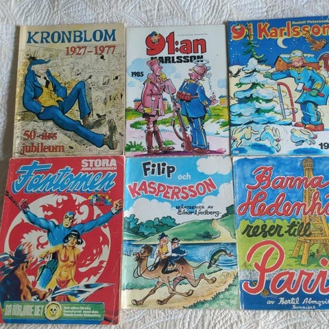 Äldre Serie Album i Fint skick! Åsa-Nisse, Kronblom, 91-an, Fridolf mfl.