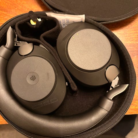 Jaybird trådlösa hörlurar i vitt med laddningsetui. Hörlurarna är trådlösa och levereras med ett fodral för förvaring och laddning