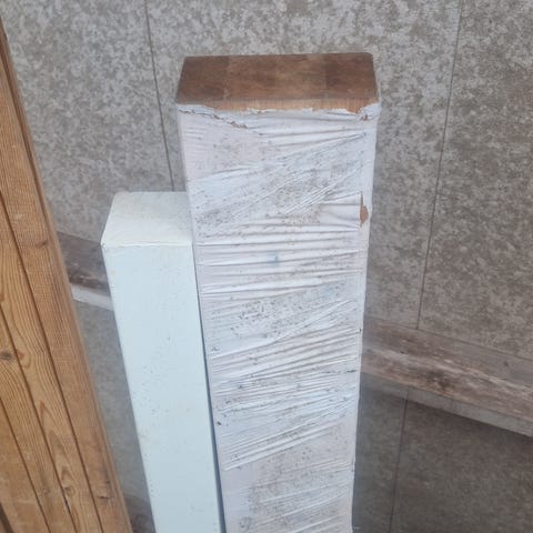 Sitter en 45x45mm träregel fastskruvad i balken som säkert går att ta bort eller byta ut.