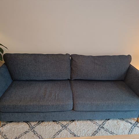 Mio soffa i grått tyg soffan har löstagbara ryggkuddar och metallben och den heter Maddison Passar för vardagsrum och erbjuder komfort för flera personer. Säljes pågrund av flytt , hemmet är djur och rökfritt. Soffan kan levereras till Västerås