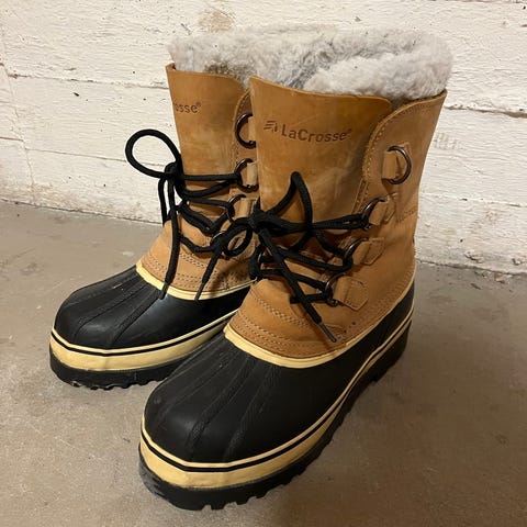 Vinterkängas Lacrosse med löstagbart innefoder och vattentät sula och fot i gummi. Ovandel i brunt läder. Oanvänd, nypris 1760 kr, även storlekar 40, 41, 42, 44.