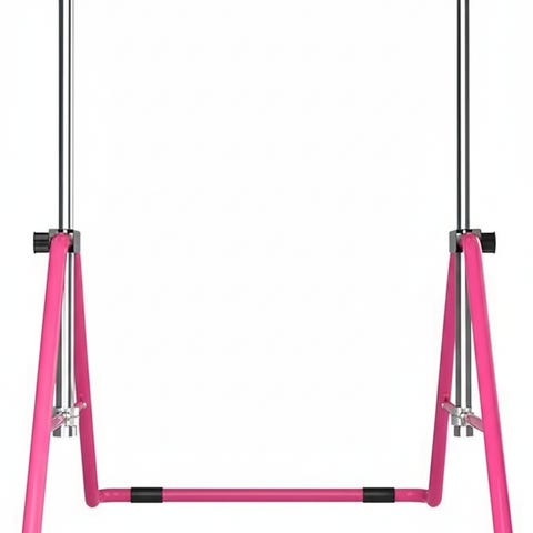 Uppgraderad 5 höjdjusteringar – DOBESTS hopfällbar gymnastikstång för barn med uppgraderad stiftlåsmekanism med låshål, lätt att justera till 35 tum/39 tum/43 tum/49 cm/51 tum. Denna hopfällbara horisontella stångutrustning för gymnastik kan justeras efter deras höjd.