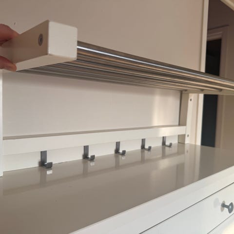 Hyllsystem Boaxel från Ikea. Skenor, hyllor, konsoller och klädstänger i nyskick