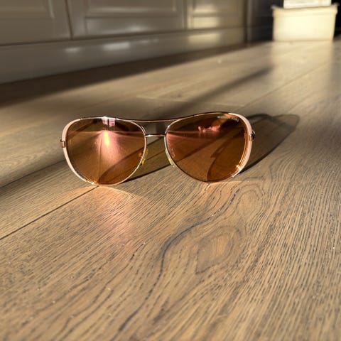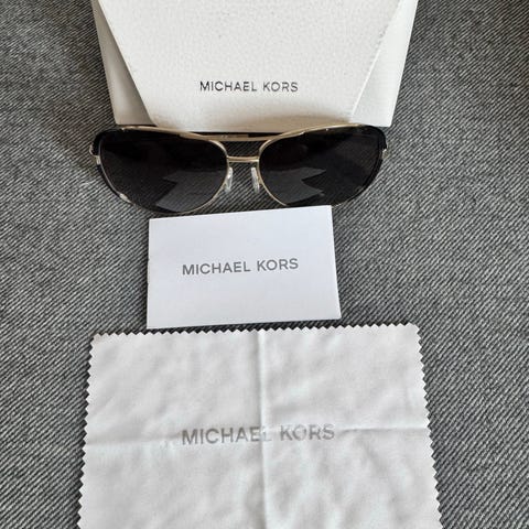 Michael Kors solglasögon för unisex med metallbåge och mörka glas. Inkluderar fodral och putsduk.