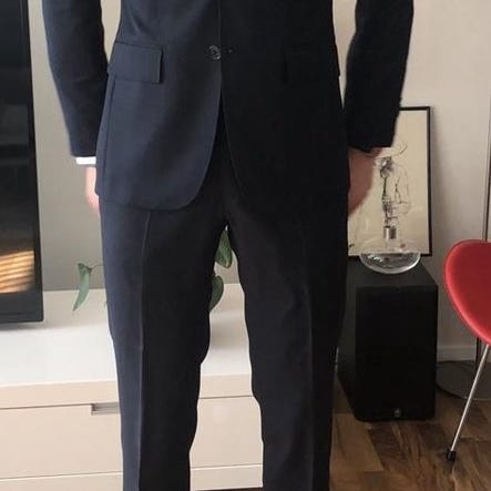 Säljer en stilren mörkblå kostym i mycket gott skick. Endast använd vid 4 tillfällen, inga synliga slitningar eller fläckar. Klassisk modell som passar både festliga tillfällen och mer formella sammanhang.