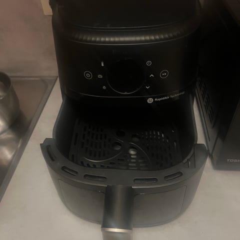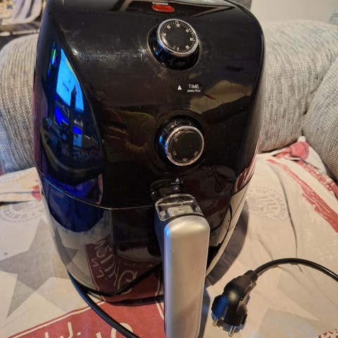 OBH Nordica Airfryer med modellnummer AG2018. Luftfritös med kapacitet för att tillaga mat med varmluftsteknik. Effekt på 1500 W och spänning 220-240 V. Färg svart.