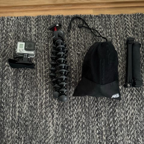 GoPro Hero actionkamera med tillhörande bröstsele. Passar för handsfree-inspelning vid olika aktiviteter. Kameran kommer utan bygel till luckan och därav pris (billig reservdel), bröstselen är justerbar för bekväm användning.