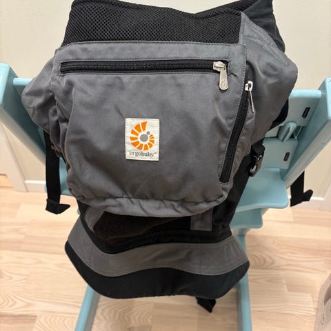 Ergobaby bärsele i svart färg. Bärselen är designad för att ge stöd och komfort vid bärande av barn. Den har justerbara remmar för anpassning och är tillverkad i slitstarkt material.