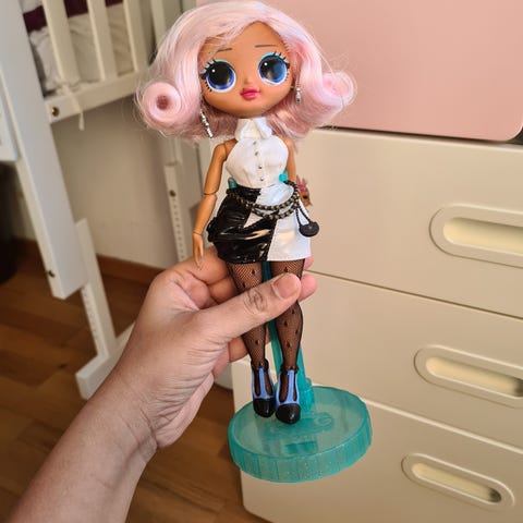 Docka att göra frisyrer på. Fint skick bortsett från fläck i dockans ansikte som jag tyvärr inte får bort, men den går lika bra att göra frisyrer på ändå!😊