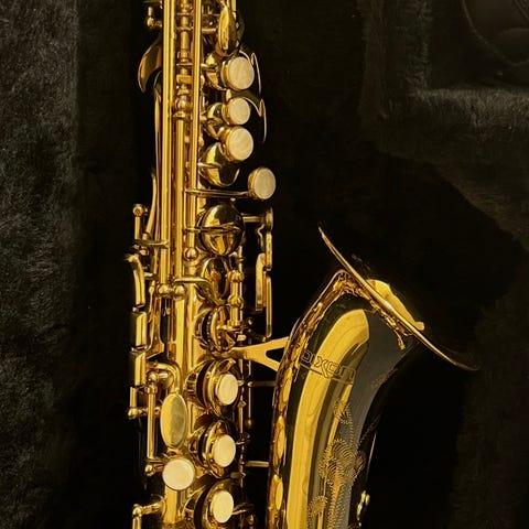 Dimavery sopran med två nackar (en rak, en böjd). Saxofon som bara demospelats så 100% nyskick. Komplett med munstycke och bra case, bara att spela!