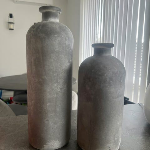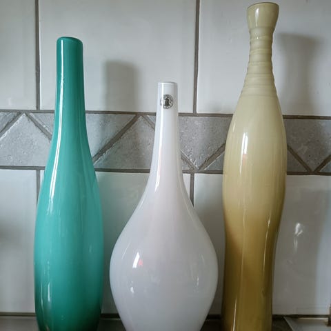 Två ljusgula vaser i olika storlekar. Knappt använda