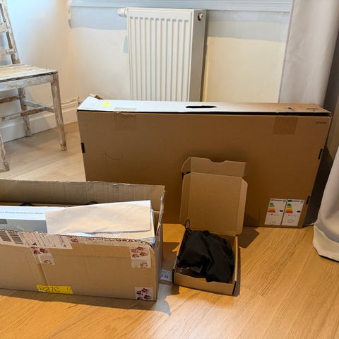 Allt fungerar felfritt. Setet säljs med de nödvändiga kablarna (strömkabel, HDMI, DisplayPort, USB)