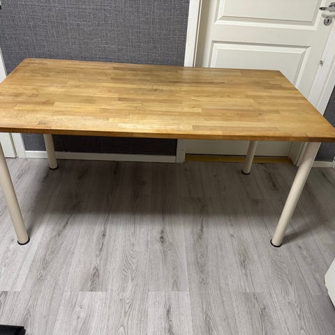 IKEA bordsskiva i trä. Skivan är avlång och har en naturlig träfärg. Passar för användning som bord eller arbetsyta. Levereras med fyra lösa träben för montering.