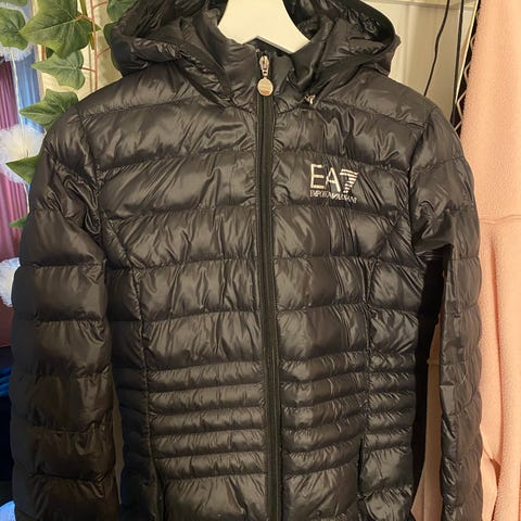 Armani vinterjacka i storlek M för dam. Jackan är svart och tillverkad av polyester. Den är designad för att ge värme och skydd under kalla förhållanden.