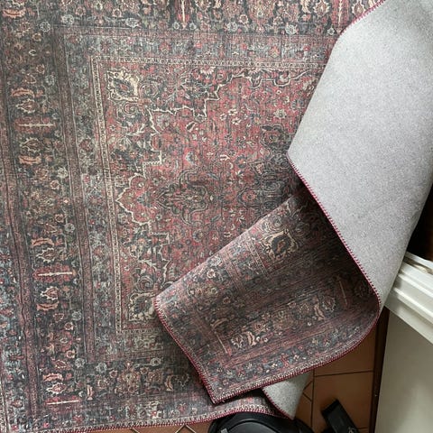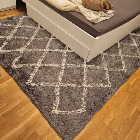 Mio matta i beige/ grå/ crémefärg med mönster. Mattan är en ullblandning och inköpt på Mio för runt 3000kr för 5 år sedan. Mest legat i förrådet senaste åren. Fint skick, ingår en matta som gör att den inte kasar omkring lika mycket. Finns några fläckar, försökte få med samtliga på bild. Syns bara om man tittar väldigt nära på mattan! Hämtas i Örkelljunga eller Helsingborg.