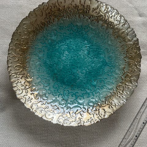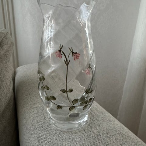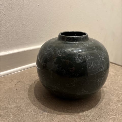 Fin liten vas med mönster på sig, svart och 24k guld , tillverkad i Grekland , i mycket bra skick