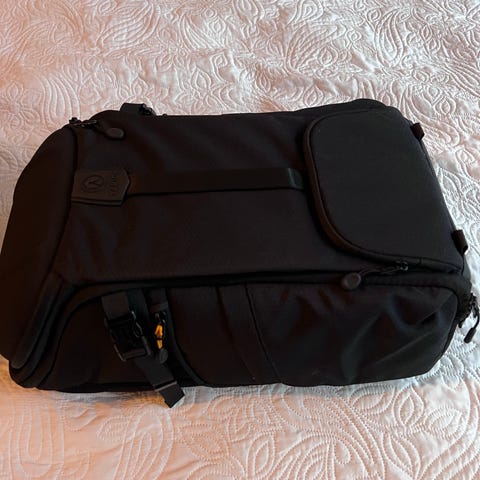 Fin kameraryggsäck, säljes pga fick en annan som passade mig bättre. Knappt använd. Ryggsäcken har flera fack och vadderade insatser för förvaring av kamerautrustning och tillbehör.