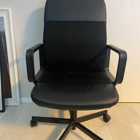 Säljer en IKEA SKRUVSTA skrivbordsstol i svart läder/konstläder.