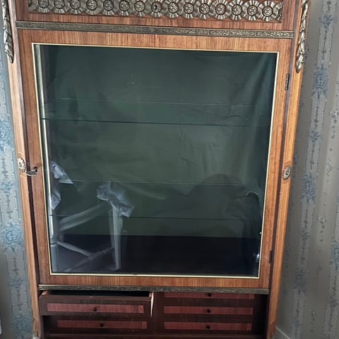 Fint vitrinskåp . Tvådelat . Bärhjälp behövs vid hämtning. Hämtas gärna omgående
