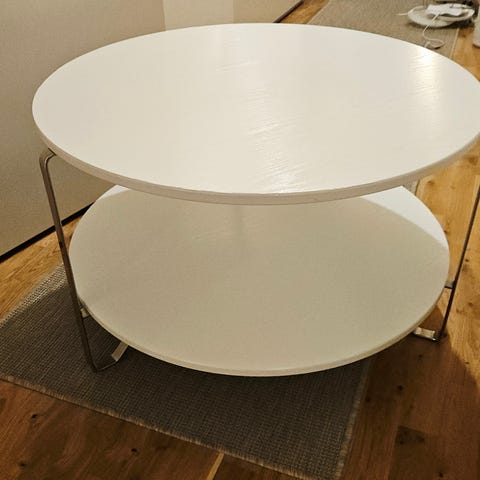 Stilrent grått bord i bra skick. Stabilt och praktiskt, passar bra som soffbord eller mindre matbord. Normalt bruksslitage. Säljes på grund av flytt. Hämtas på plats.