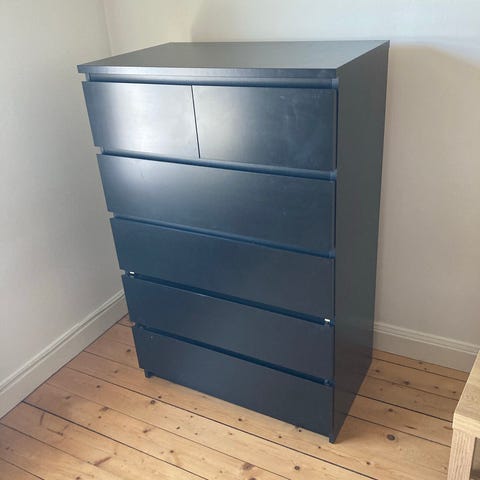 En låda är lagad på insidan, inget som syns eller påverkar funktionen.