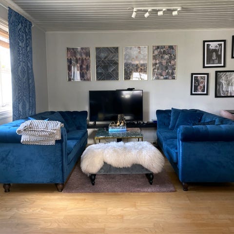 Bäddsoffa, halvkroppssolarie, ca 42 tums tv m.m....
