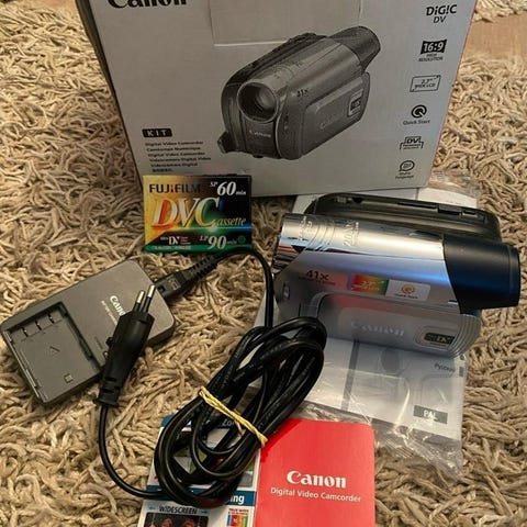Digital videokamera (Nyskick) inkl två nya kassettband (oöppnade förpackningar 100:-/st nya), svart väska.