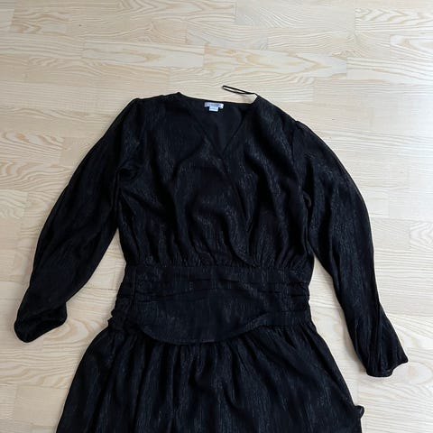 Härlig svart blus / topp i satin från Gina Tricot i storlek M. Fin axelbandslös modell med långa ärmar och smockad ringning och ärmslut. Mycket bra skick!
