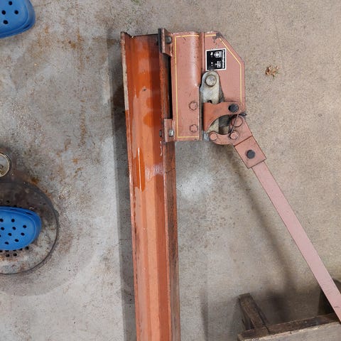 Kraftig maskin i gjutjärn. Medföljer extra skär samt armar för att det som klipps ej skall falla ned bakom. Står på pall för enkel lastning. Säljs då jag inte har plats för den.