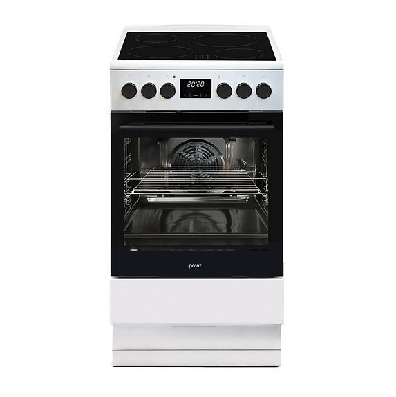 Point POCO360CFW5 är en keramisk spis med en ugnstimerdisplay så att du kan ha enklare kontroll och bättre hålla koll på tillagningstider. Ugnen erbjuder en kapacitet på 65 liter och en 25-watts halogenlampa. En standardbakplåt, en djupare ugnsform och ett ugnsgaller ingår. Du kan bekvämt förvara tillbehören i förvaringslådan som finns under ugnen. Spisen har också justerbara fötter med vilka du enkelt kan säkerställa att apparaten står i våg.