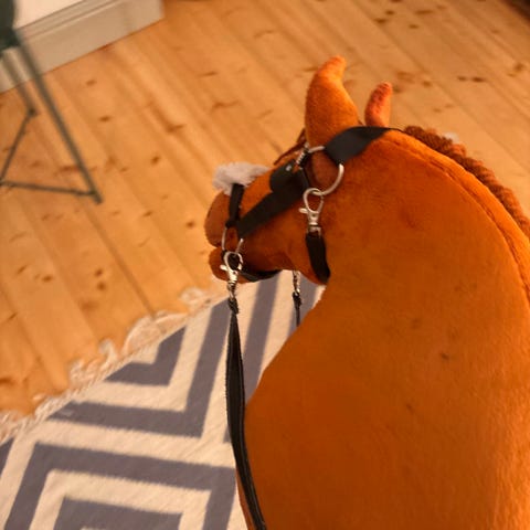 Ställbart huvudlag i äkta skinn. Limmat och nitat. Pannbandet har klisterremsa i bling. Kedja som bett som du enkelt kan byta ut mot eget metallbett. Tyglar ingår ej