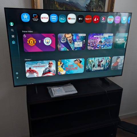 Crystal Display, 4K Smart TV. Imponerande skärpa ock färgåtergivning. Bruksanvisning. Väggfäste och bordsfötter. TV:n 3000- TV stativet med hjul kan köpas till för 500-. 073-0504262