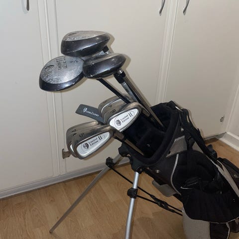 Golfbag och 11 klubbor. Perfekt för nybörjaren.