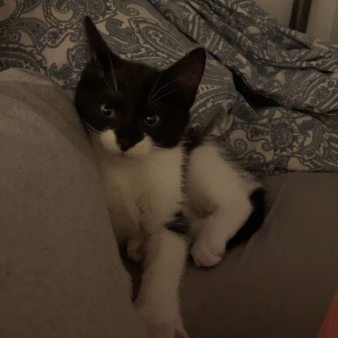Hon är redan van vid andra katter, hundar, bilresor och barn, vilket gör henne till en trygg följeslagare även utanför hemmet.