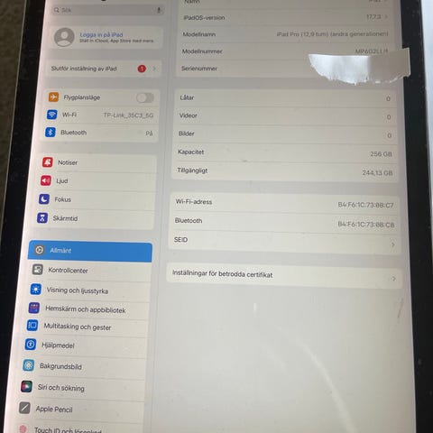Hej! Säljer min Apple 10.2-inch iPad Wi-Fi - 9:e generation - surfplatta - 64 GB - 10.2" IPS (2160 x 1620) - rymdgrå