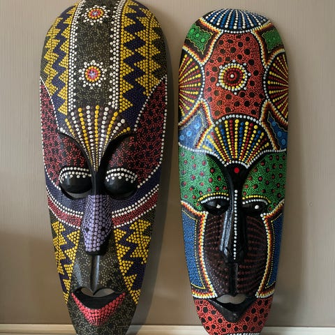 afrikanska trämasker 2 stycken bohem mysiga inredning väggprydnad
