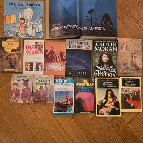 Samling av böcker och bokserier i olika genrer och ämnen. Innehåller både skönlitteratur och facklitteratur, inklusive historiska verk, biografier, och referensmaterial. Böckerna varierar i storlek, utgivningsår och författare.