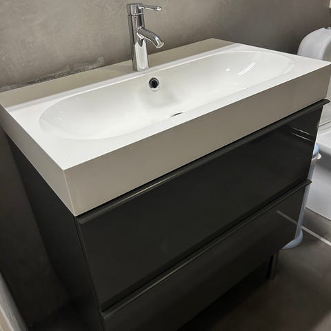 IKEA Godmorgon tvättställskåp på ben med handfat och tvättställsblandare + 1 högskåp med 5 hyllor säljes.