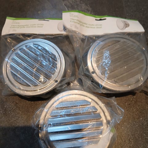 2 st ventilationsgaller i aluzink för rördim 125 mm
