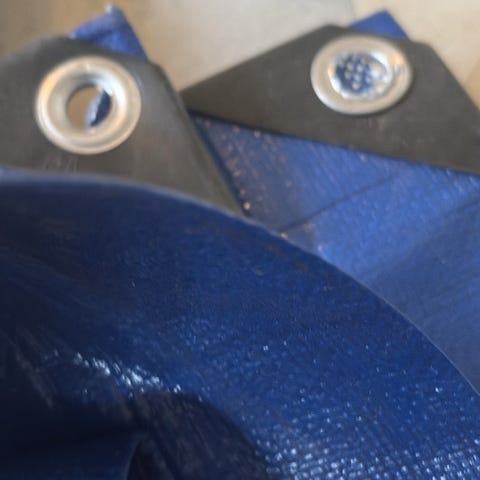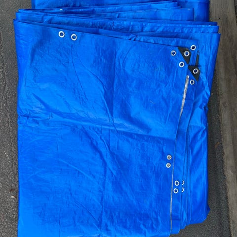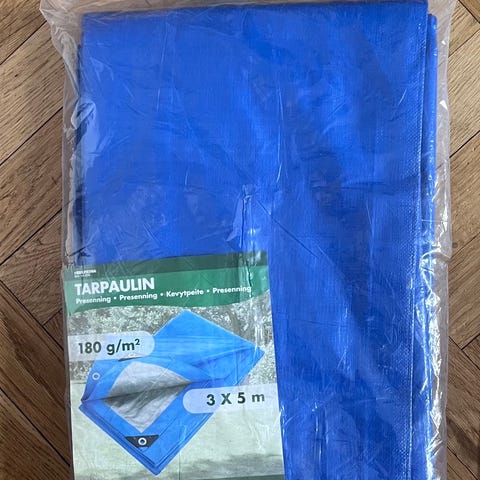 Två stycken presenningar, helt nya i förpackning. Vävförstärkt polyeten, 75 g/m2. Storlek 1,5x2 meter.