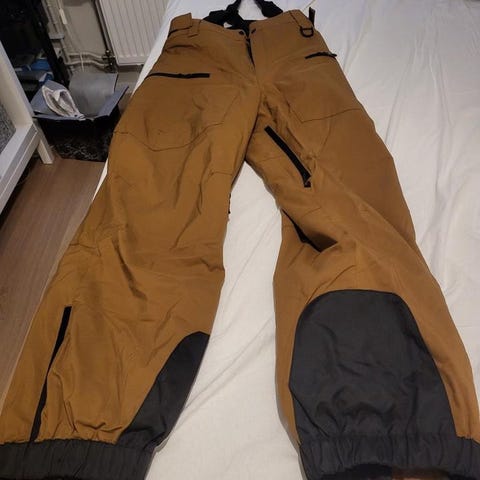 Högkrage, mjukt fleecefoder, justerbara hängslen, bra med fickor.