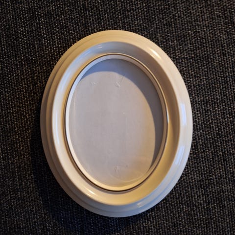 Locket har troligen ursprungligen tillhört en annan skål och är lite överstort för skålen.