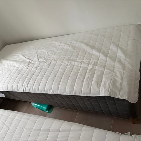 I priset ingår sänglinne, kuddar och kuddfodral som syns på bilden.