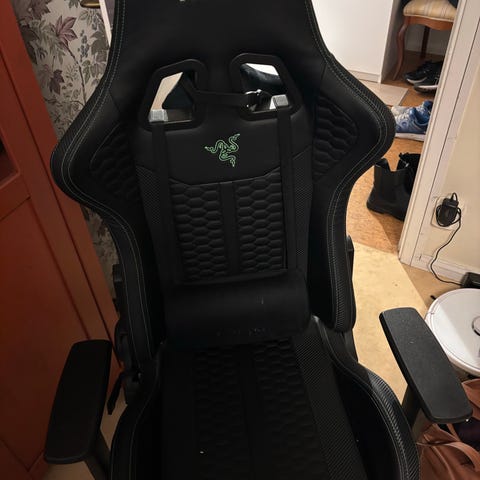 Jättebekväm gaming stol razer med nack- och ryggkudde. Mycket bra skick.