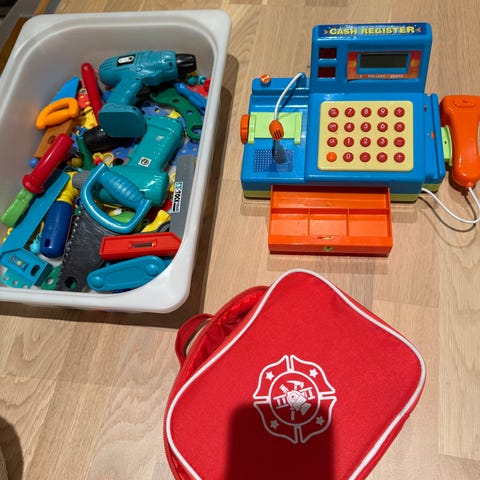 Set med actionfigurer föreställande en polis, brandman och en kille med snowboard. Många olika tillbehör. Se bilder!