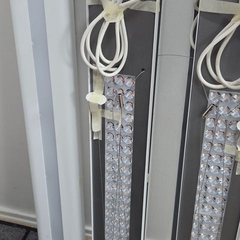 Arbetsbelysning i grå metall med lysrör. Lampan är 1.50 lång har 2 st utbytbara T5-rör, lång jordad kabel med jordad stickpropp avsedd för vägguttag. Upphängning stålvajer, dragströmbrytarna justerar armaturens ned och uppljus samt dimmer funktionen. Passar som kontorsbelysning, arbetsbelysning den har Mycket bra ljus för handarbete.