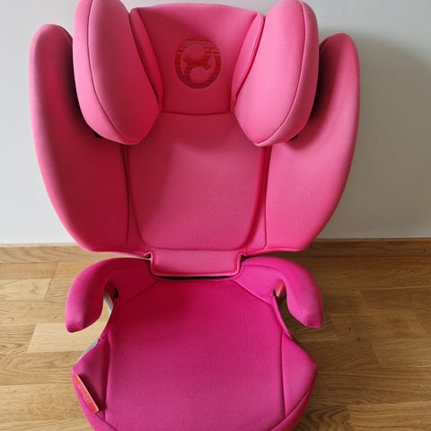CYBEX bilbarnstol med en storlek i rosa färg. Passar som barnsäkerhetsstol för bil köpte för 2500.