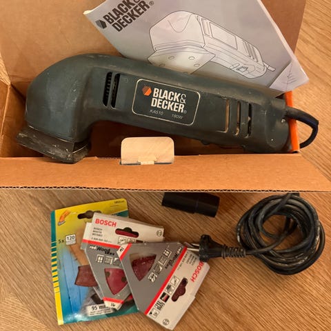 Black&Decker slipmaskin i bra skick och med diverse tillbehör (se bild). Inga slippapper medföljer